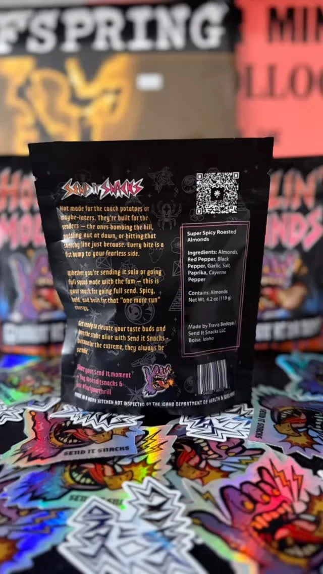 WE ARE OFFICIALLY LIVE * WE ARE OFFICIALLY LIVE * WE ARE OFFICIALLY LIVE * Unleash the full power of your taste buds with our high-performance, ultra-satisfying snack foods. These snacks are engineered for those who live life fast, delivering unyielding flavor and crisp satisfaction at the speed of hunger. Fuel Your Thrill - Keepin' the stoke alive since 2025 Shop Now Featured Products Howlin' Mounds - Barkin' At Da Moon $5.00 Howlin' Mounds - Sweeet Caroline $5.00 Send It Snacks Foam trucker hat $16.89 Shop All